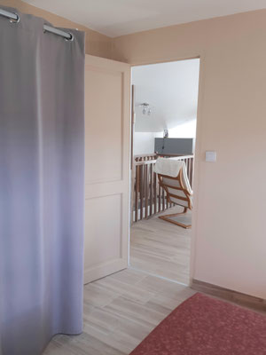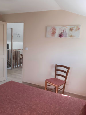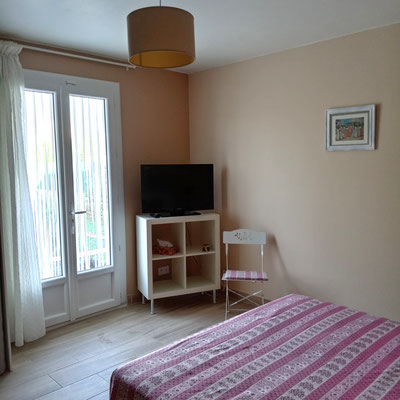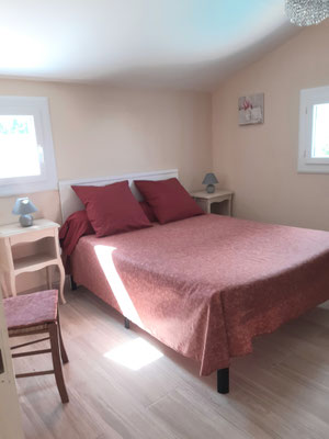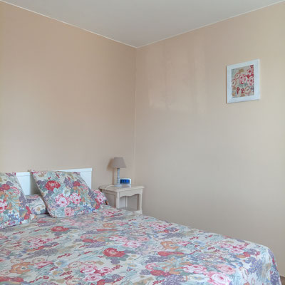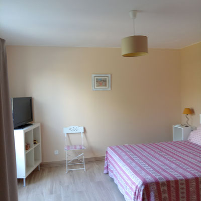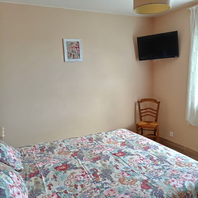 La chambre "les papillons" (12m²) pour une à deux personnes (lit en 140), lit d'enfant jusqu'à 3 ans, rangements & la chambre "les fleurs" (12m²) pour une à deux personnes (lit en 160), armoire, chaises et télévision.