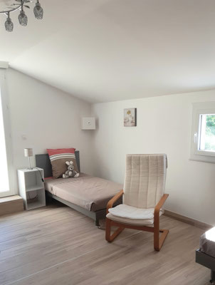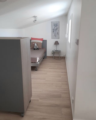 - d'une chambre (lit en 140) avec dressing, chaise, ventilateur ou chauffage d'appoint ;
