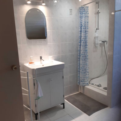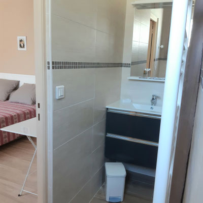 Elles ont en commun une grande salle d'eau et des toilettes séparées.