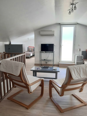 L'espace famille de 49m² (sud-ouest) pouvant accueillir 5 personnes est composé :